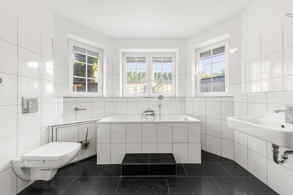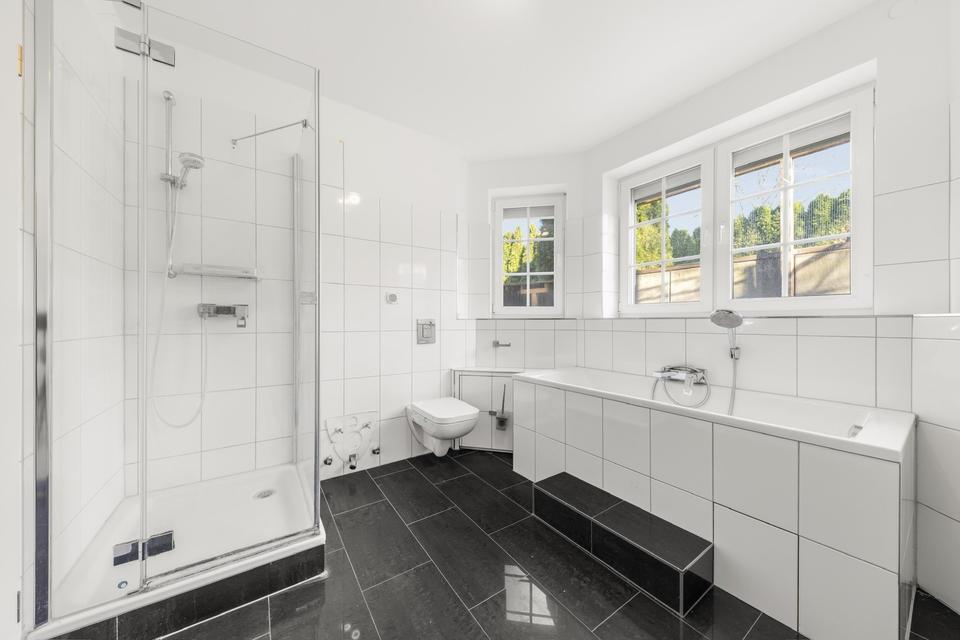 •Modernes Bad mit Badewanne, Dusche und hochwertigen Fliesen