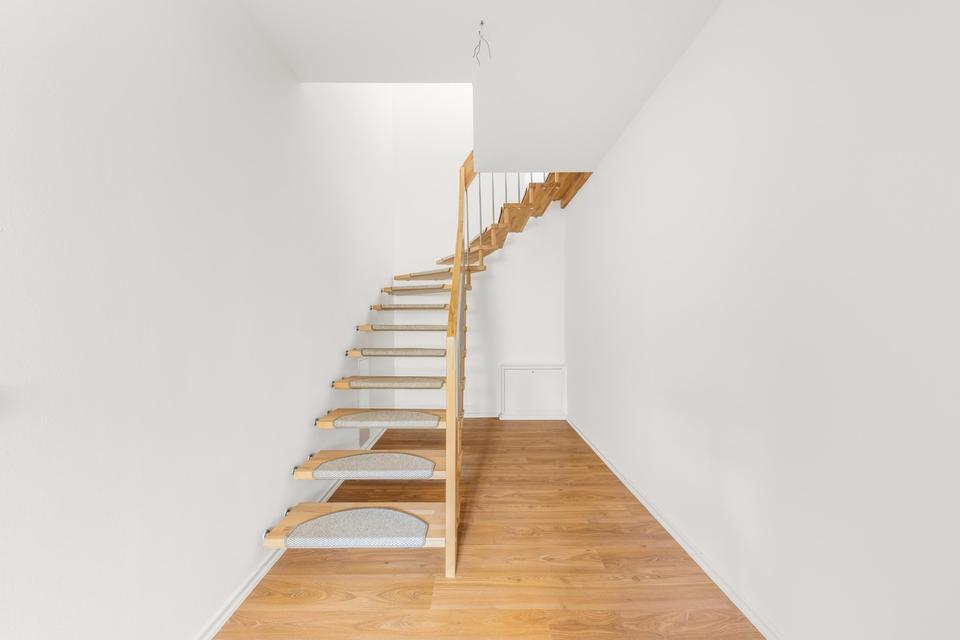 Diese moderne 3-Zimmer-Maisonettewohnung mit ca. 111,68 m² Wohnfläche bietet Ihnen Wohnkomfort auf zwei Ebenen – ideal für Paare oder kleine Familien, die großzügiges Wohnen im Grünen und dennoch in Berlin-Lage schätzen. Das Gebäude wurde im Jahr 2012 erbaut und präsentiert sich in neuwertigem Zustand. Vom offenen Wohn-/Essbereich mit Erker gelangen Sie in eine offene Küche, über eine interne Treppe erreichen Sie das untere Geschoss mit Schlafzimmer und modernem Bad. Zusätzlich stehen Ihnen ein Garten, ein Kellerraum sowie ein Außenstellplatz zur Verfügung. Genießen Sie ruhiges Wohnen wie in einem Einfamilienhaus, aber mit den Vorteilen einer Wohnung.