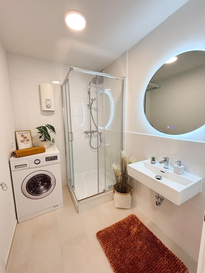 •Bad & Separates WC: Modernes Design, das morgendliche Hektik vermeidet.