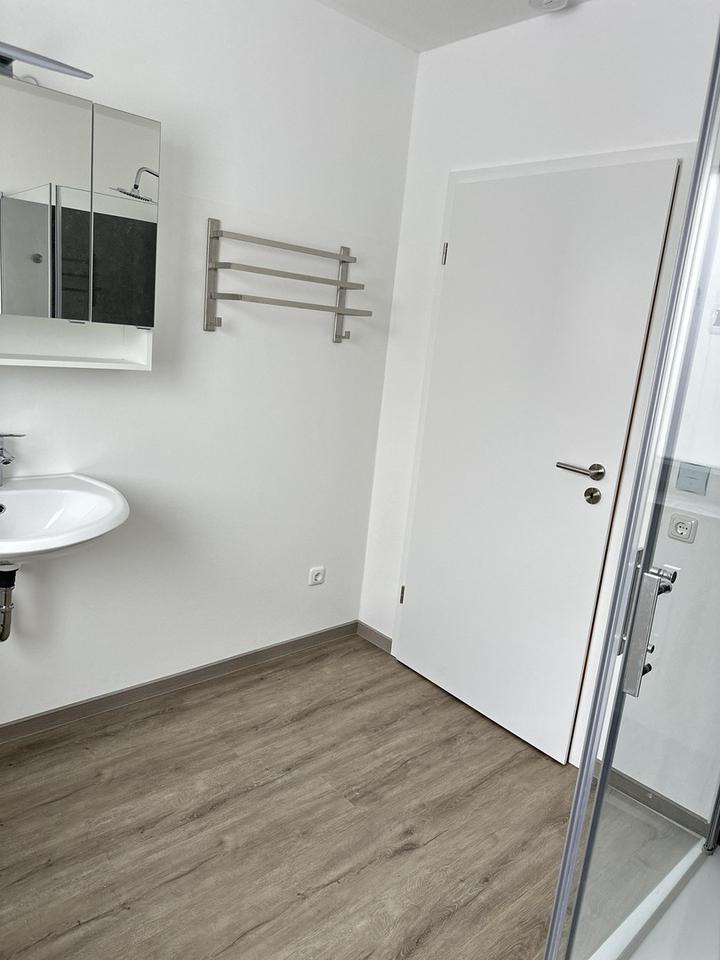 Durch modernes Design und hochwertige Materialien bietet die Wohnung einen sehr hohen Wohnkomfort. Die offene Einbauküche, helle Räume und der Blick in den Gemeinschaftsgarten sorgen für eine angenehme Wohnatmosphäre.