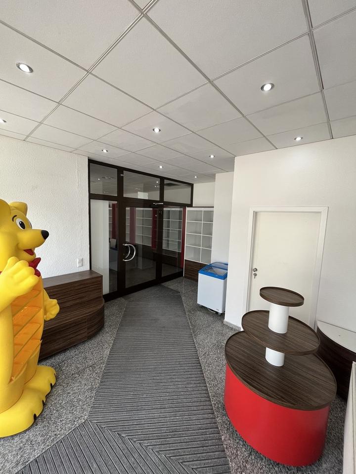 In einem Wohn- und Geschäftshaus befindet sich im Erdgeschoss eine bereits möblierte Gewerbeeinheit, bestehend aus einem Vorraum mit Eingang (Windfang), einem Haupt oder Verkaufsraum sowie einem Nebenraum, welcher als Büro, Lager oder Pausenraum genutzt werden kann. Ein WC ist ebenfalls vorhanden.