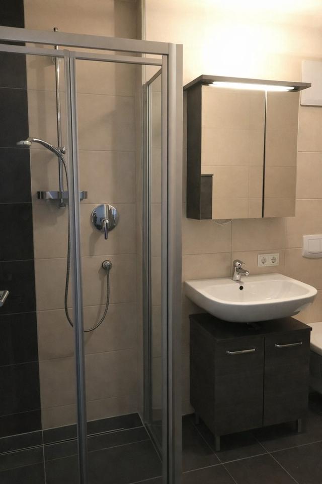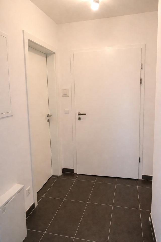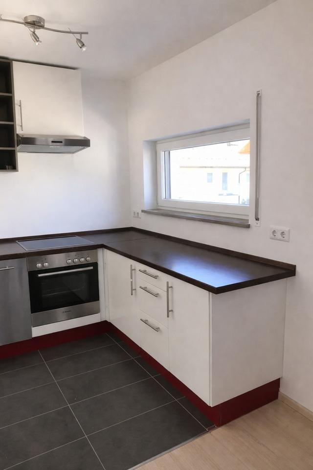 Die Küche ist funktional geschnitten und bietet ausreichend Platz für eine eigene Einbauküche. Das Badezimmer ist modern gefliest und gepflegt. Ein Flur verbindet alle Räume sinnvoll und bietet zusätzliche Stellfläche.
