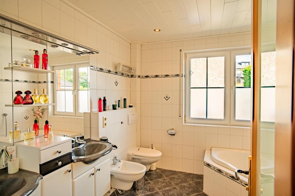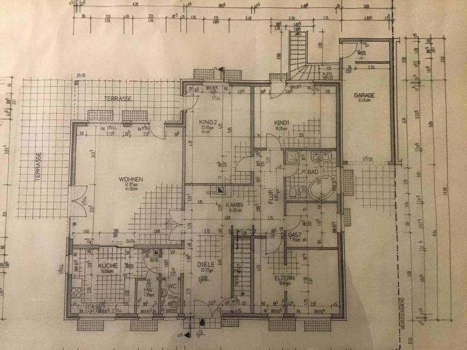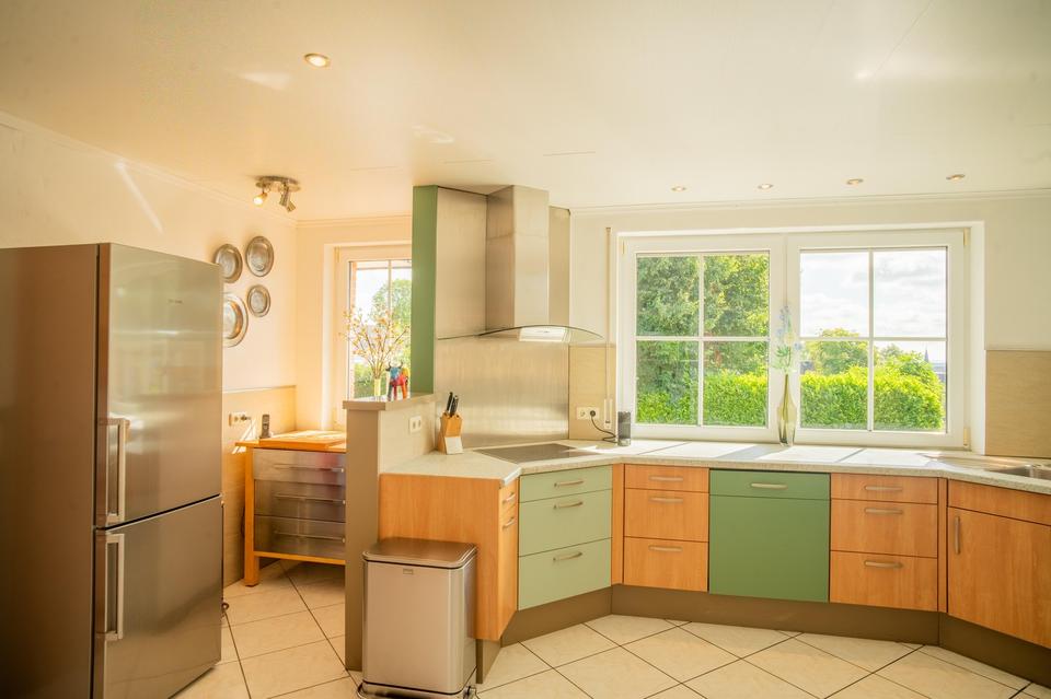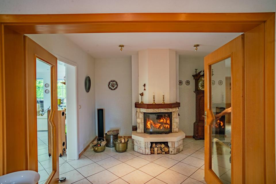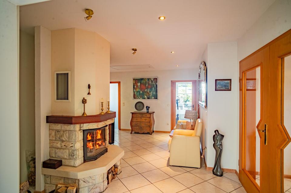 Terrasse, Garten, Keller, Vollbad, Duschbad, Einbauküche, Gäste-WC, Kamin, Fliesen