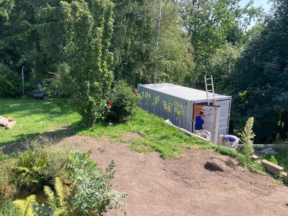 • 2 Kaminöfen (mit Wärmespeichersteinen) mit Außenschornsteinen im