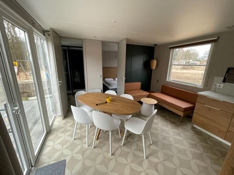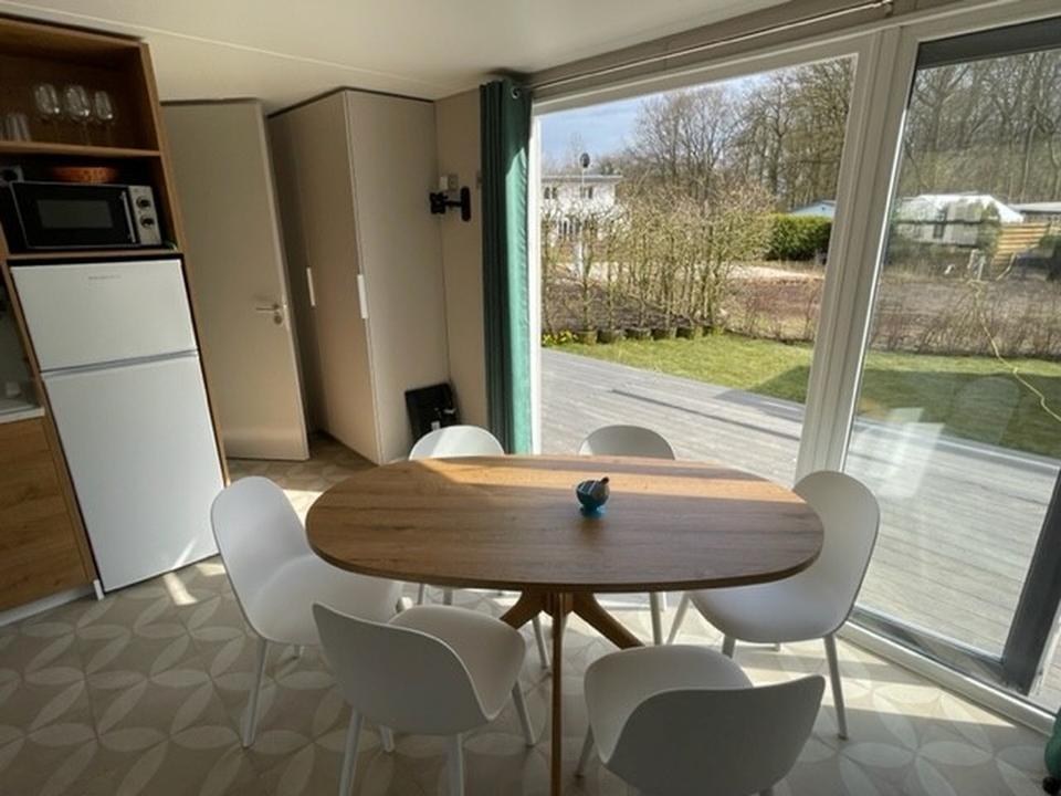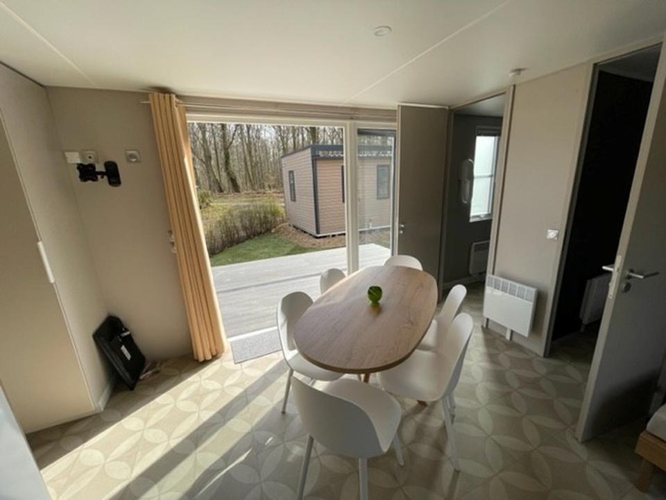 Das Haus ist voll möbliert, komplett ausgestattet und sofort bezugsbereit. Mit ca. 40 m² Wohnfläche, drei Schlafzimmern und einer großzügigen 18 m² Veranda bietet es ausreichend Platz für Familien, Kinder und Haustiere.