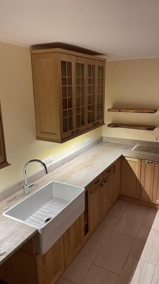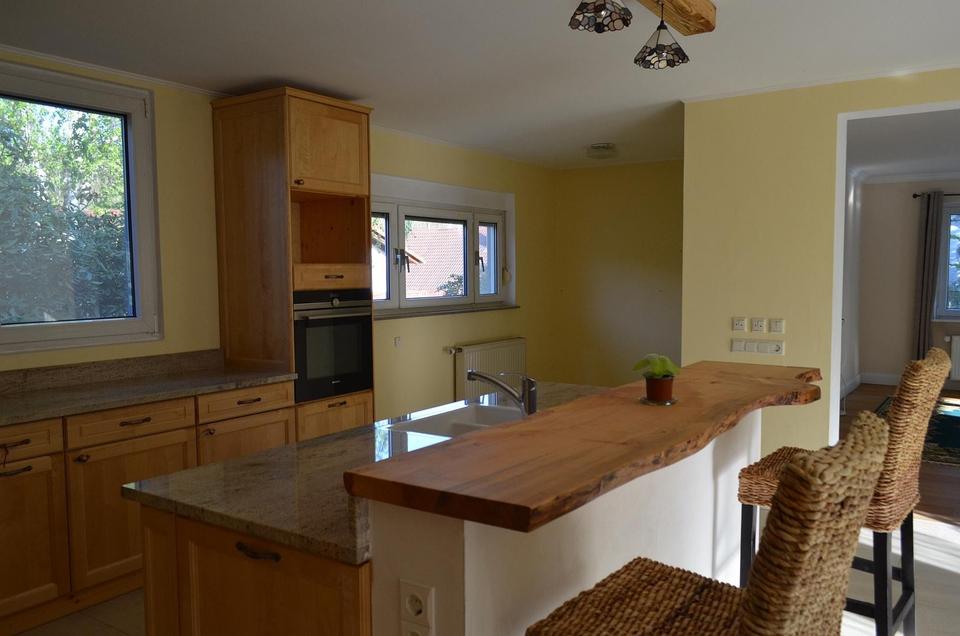 Wir haben bei Rennovierungen seit 2018 großen Wert auf bestmögliches Raumklima und Wohngesundheit gelegt – Küche ist sehr hochwertig aus Vollholz (keine Pressspanplatten) mit Birkenholzfronten. Echtholzparkett (schwedische Eiche) in Wohn- und Schlafzimmern, Gästeküche und Gästebad im OG mit Holzfaser-Innendämmung und Lehmputz