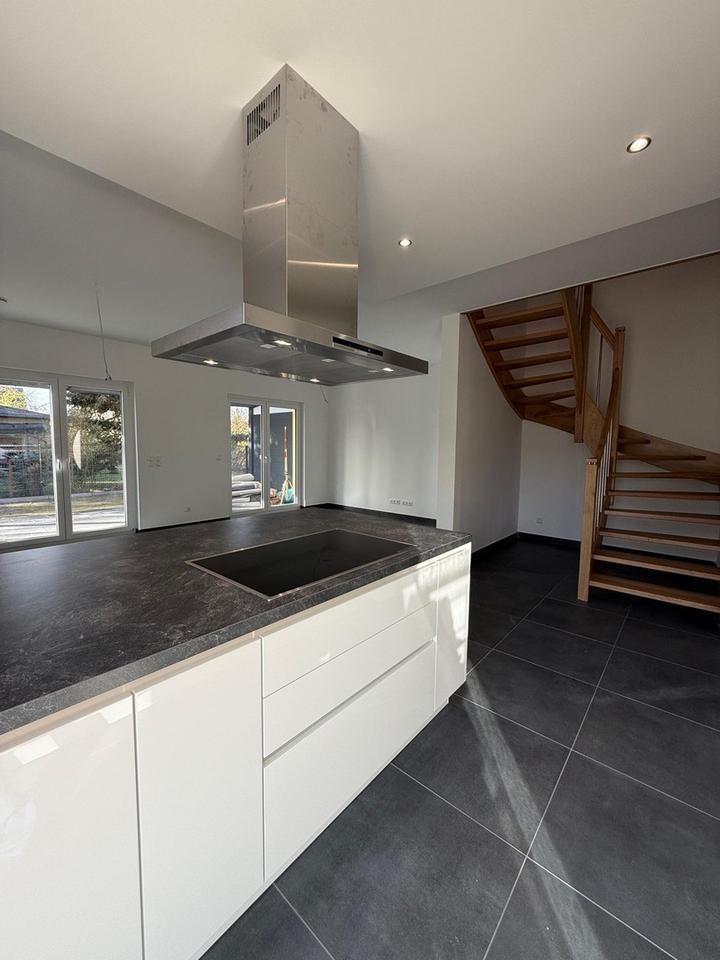 Das offene Wohn- und Esszimmer mit großzügigem Küchenbereich mit neuer EBK mit alle el. Geräten bietet viel Platz für Ihre individuelle tägliche Kochinspiration und führt direkt auf die Terrasse und in den Garten – ideal für Familienleben und entspannte Abende. Abgerundet wird diese Ebene durch ein Gäste-WC mit Dusche, ein Fenster sowie einen