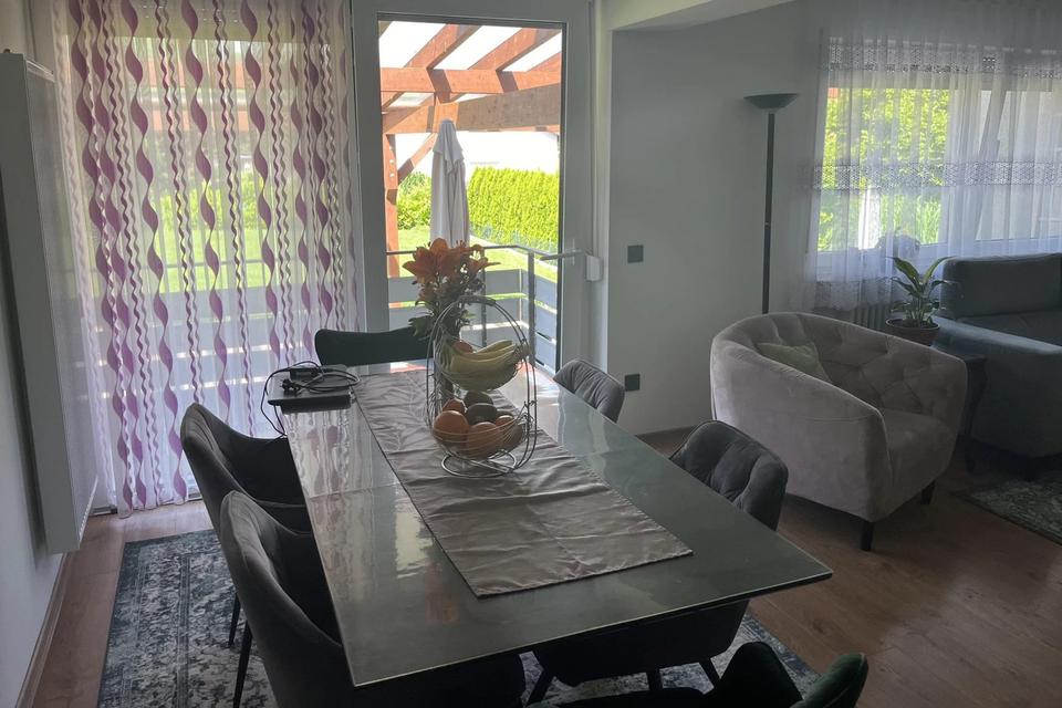 Die Immobilie befindet sich auf einem ca. 711 m² großen Eck-Grundstück, das direkt an die Wiesenflächen des Honbergs grenzt – ideal für Naturfreunde und Outdoor-Enthusiasten. Der Garten und die große Terrasse bieten eine perfekte Oase zum Entspannen und Genießen. Das Haus hat zwei Wohnungen: