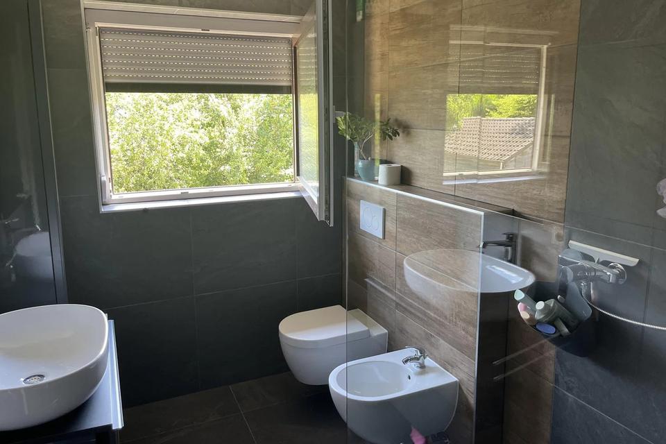 Zum Verkauf steht dieses wunderschön renovierte Zweifamilienhaus, das in einer ruhigen, grünen Oase am Honberg-Rücken liegt. Die Immobilie wurde 2021/2022 aufwändig und geschmackvoll saniert und bietet modernen Wohnkomfort bei gleichzeitiger Nähe zur Natur. Das Haus eignet sich sowohl für Eigennutzer als auch für Kapitalanleger, da es zwei separate Wohnungen bietet.