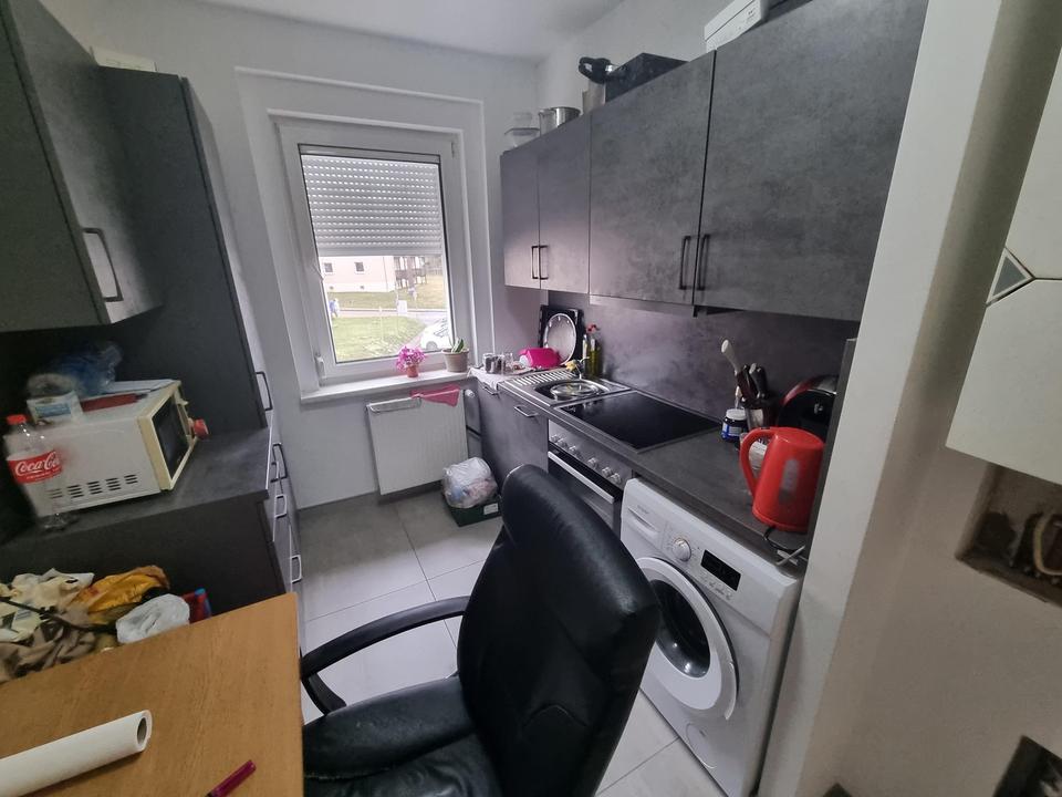 Das großzügige Wohnzimmer bietet ausreichend Platz für eine komfortable Wohnlandschaft und lädt zum Verweilen ein. Die Einbauküche ist mit modernen Geräten ausgestattet und ermöglicht Ihnen ein entspanntes Kocherlebnis.