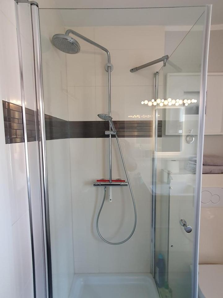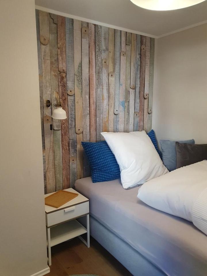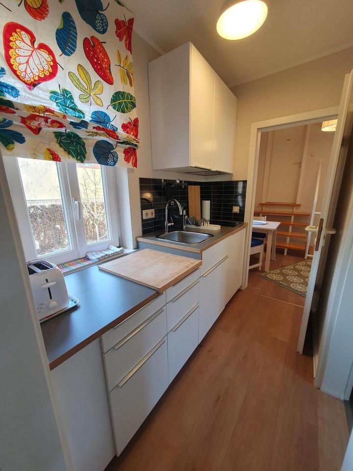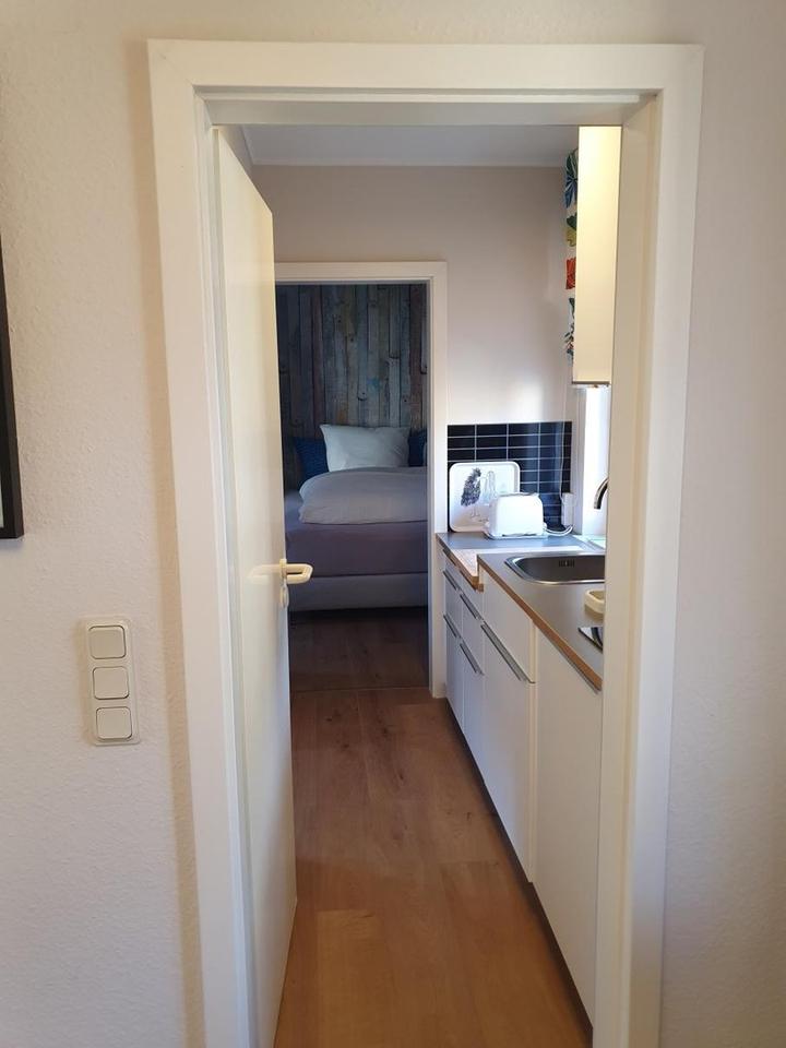 Das Apartment verfügt über ein neues Boxspringbett, einen Schrank und eine Garderobe. Weiterhin steht ein Tisch mit 2 Stühlen, ein Fernseher sowie eine Küchenzeile mit Herd (2 Platten), eine Kaffeemaschine, Kühlschrank, Wasserkocher sowie Töpfe und Geschirr zur Verfügung. Auch WLAN ist vorhanden.