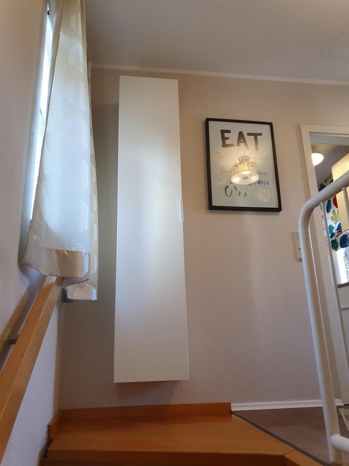 Es besteht aus einem Eingangsbereich und Wohnzimmer im EG, sowie einem Flur, Bad, Kochnische und Schlafzimmer im 1. OG.