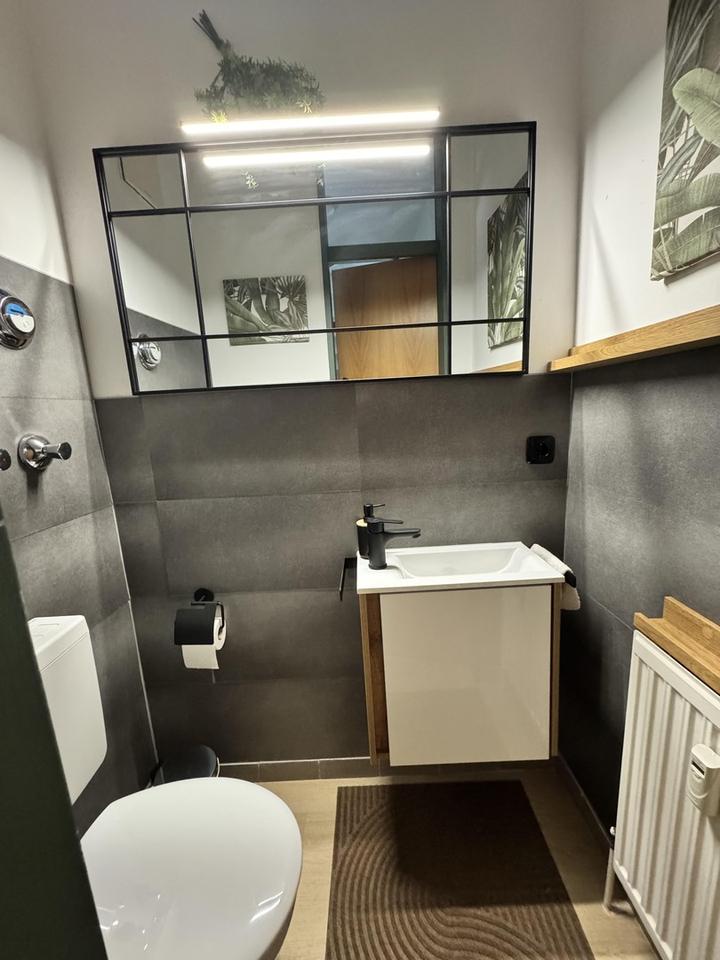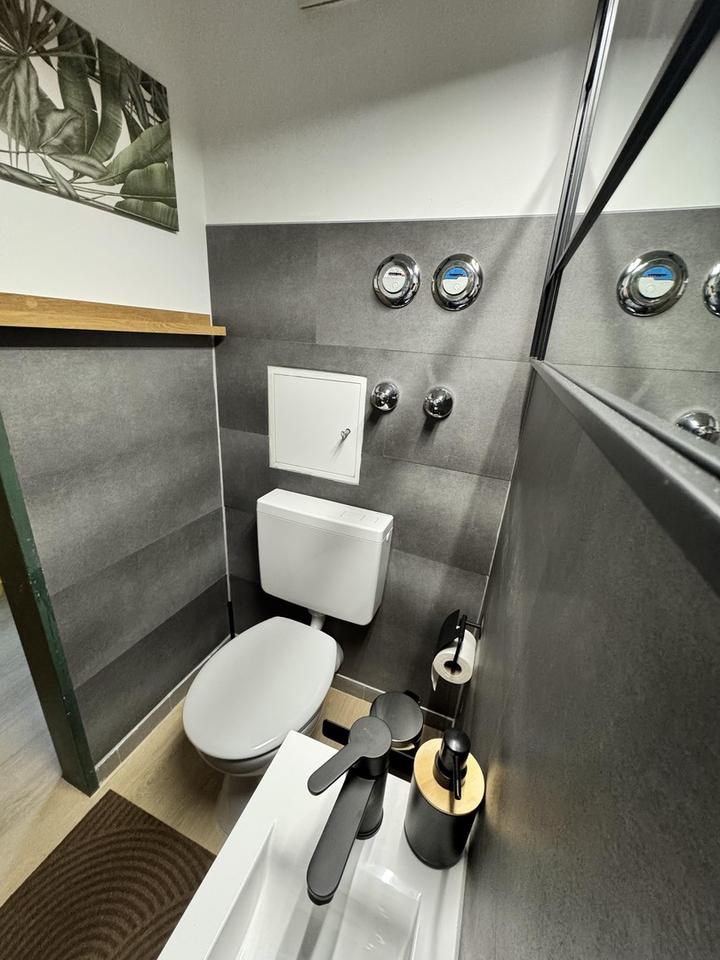 Die neue, moderne Einbauküche ist mit hochwertigen Geräten ausgestattet und lädt zum Kochen und Verweilen ein. Der offene Wohnbereich ist lichtdurchflutet und bietet Zugang zu einem kleinen Balkon, auf dem Sie entspannte Stunden im Freien verbringen können. Die Terrasse vor der Eingangstür im ersten OG lädt ebenfalls zum Entspannen ein. Weiterhin befindet sich das Gäste-WC im 1. Og.