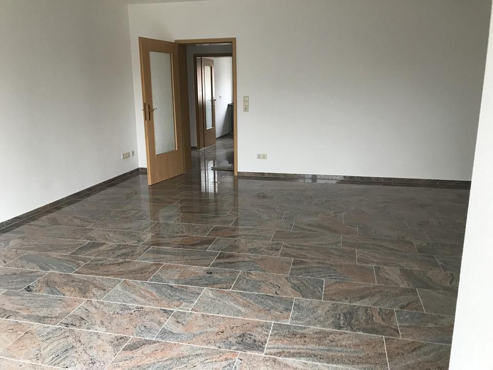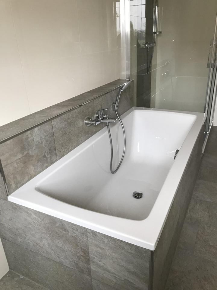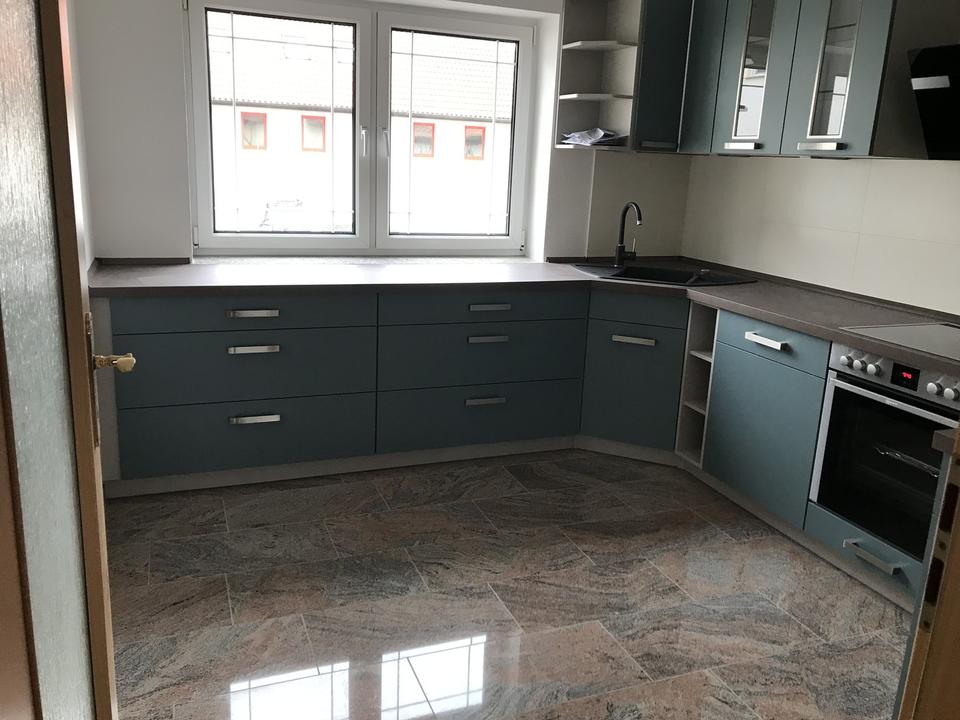 Im Bad der Dachgeschoss-Wohnung, welches mit modernen Fliesen verschönert ist, finden Sie eine große Badewanne, eine Echtglas-Dusche (90x90cm) und einen Waschmaschinen-Anschluss. Angrenzend befindet sich ein kleiner Abstellraum. Vom Wohnzimmer aus mit einem schicken Erker und einer großen Fensterfront hat man einen fantastischen Weitblick in die Natur. In der Küche, dem Abstellraum, Flur und Wohnzimmer wird hochwertiger Granit verlegt. Außerdem finden Sie in der kompletten Wohnung Fußbodenheizung vor. Im Schlafzimmer werden Feinsteinzeugfliesen verlegt und im Kinderzimmer befindet sich Vinyl-Fußboden.