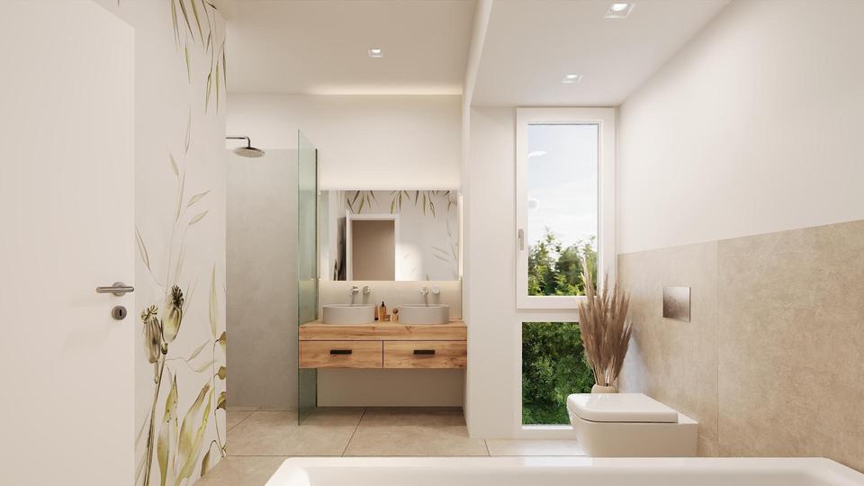 Die Außenanlagen und die Hausanschlüsse sind nicht im Preis enthalten und können gegen Aufpreis vereinbart werden.