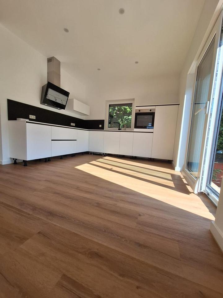 Eine hochwertige Ausstattung mit bodentiefen Fenstern bietet viel Licht in den großzügigen Räumen mit einer Höhe von 2,70 cm. Ein großer Balkon läd zum verweilen ein und eine Garage gehört ebenfalls zu der Wohnung. Das große und moderne Badezimmer verfügt über eine 100x100cm Dusche sowie eine freistehende Badewanne. Ein Abstellraum befindet sich zudem im Anbau auf dem Grundstück und ein Fahrradabstellraum direkt neben den Garagen. Der Garten ist zur freien Nutzung.