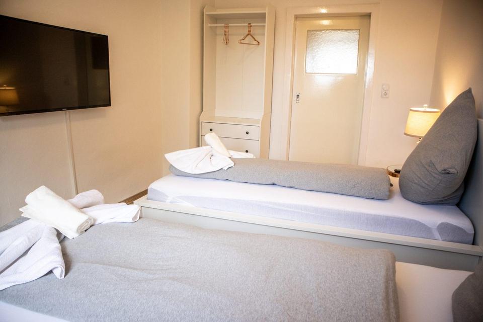 Die Wohnung ist voll möbliert und bietet alles, was man für einen komfortablen Einzug benötigt – ganz ohne Aufwand. Jedes Zimmer ist mit einem Bett, Smart-TV, Schreibtisch, Bürostuhl, Nachttisch, Beleuchtung sowie einem Kleiderschrank ausgestattet.