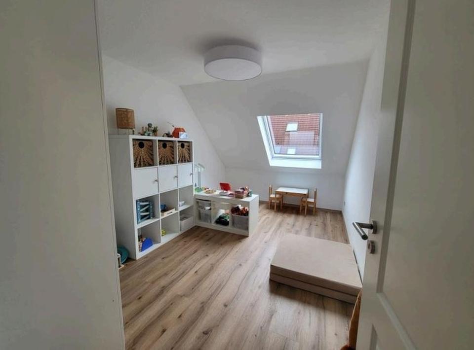 Großzügige, schallgedämmte Velux-Fenster sorgen für viel Tageslicht und eine ruhige Atmosphäre. Der hochwertige Bodenbelag zieht sich harmonisch durch die Wohnräume. Die moderne Nobilia-Einbauküche mit Markengeräten ist funktional geplant und fügt sich stilvoll in den Wohnbereich ein.