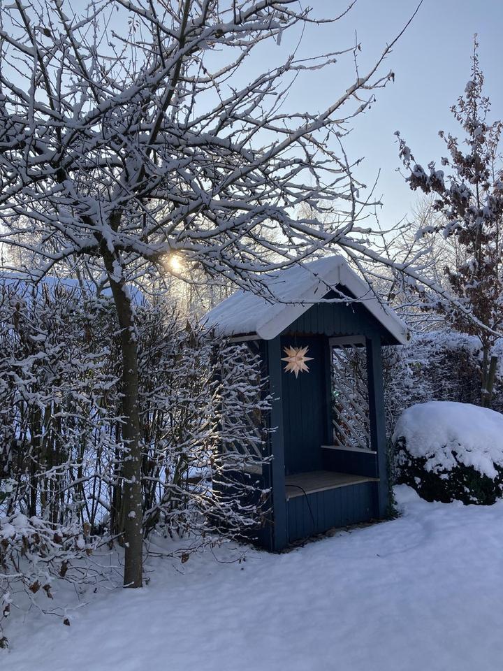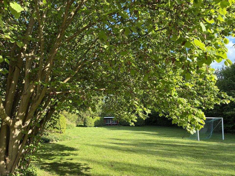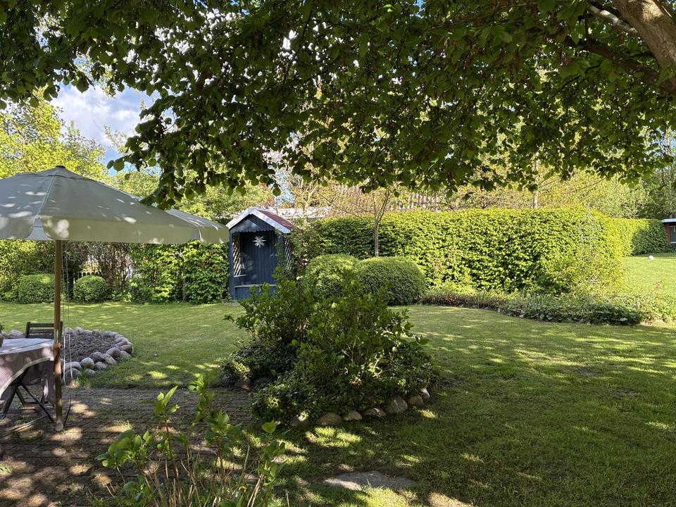 Genießen Sie entspannte Stunden im knapp 4000 qm großen und vollständig eingewachsenen eigenen parkähnlichen Garten mit zwei Terrassen, zwei kleinen Wäldchen, einer kleinen Laube und einem Shelter, der weitere idyllische Übernachtungsmöglichkeiten am Lagerfeuer bietet.