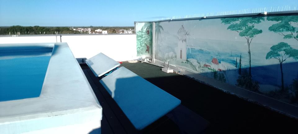 Die Wohnung befindet sich im obersten Stockwerk und liegt höher als die umliegenden Gebäude. Dies bietet einen hervorragenden Panoramablick und erhöht gleichzeitig die Privatsphäre, da keine höheren Gebäude in der Nähe den direkten Blick in die Wohnung ermöglichen.