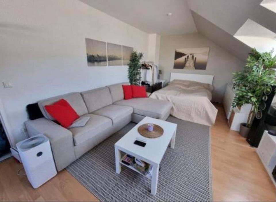 Die Wohnung befindet sich im Dachgeschoss und hat neben einem großen Wohnschlafraum