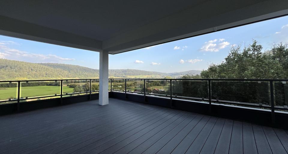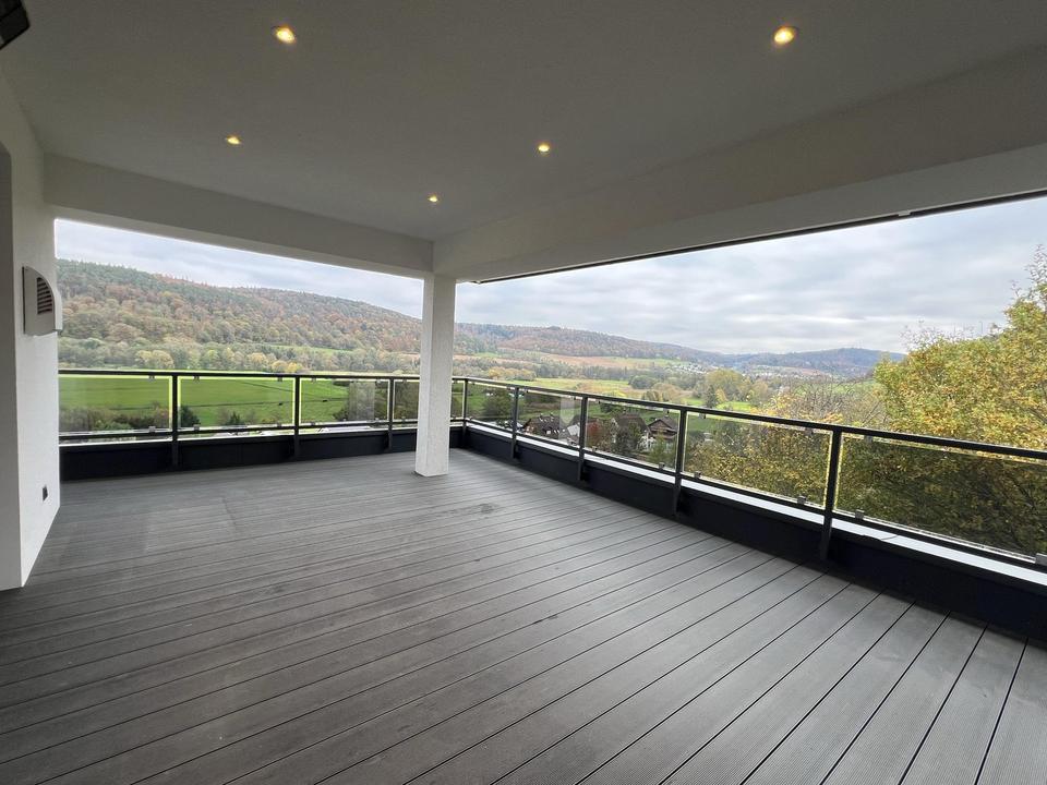 Rundum Ausblicke von der großen überdachten Dachterrasse,