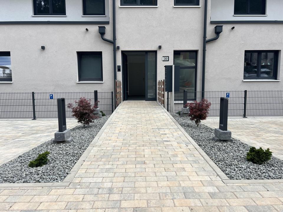 Direkt neben dem Hauseingang sind zwei Stellplätze für das