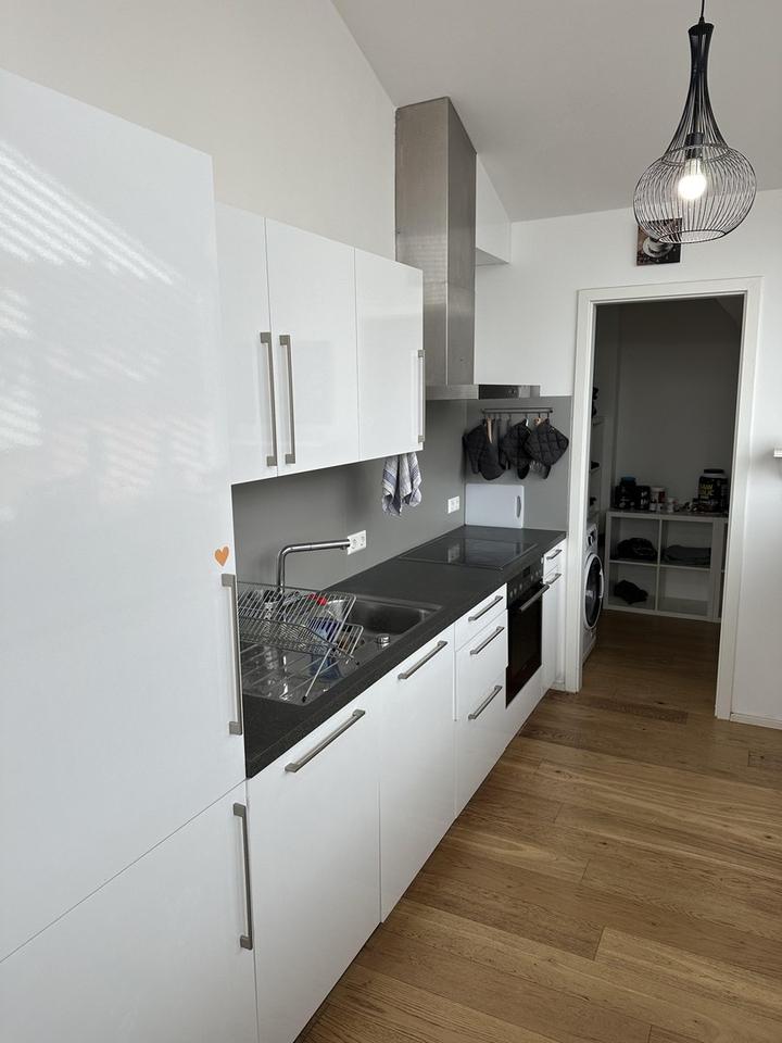**Stilvolle Penthouse-Wohnung in Ludwigsburg Mitte** Willkommen in dieser exquisiten Penthouse-Wohnung im Herzen von Ludwigsburg! Diese stilvolle Immobilie bietet Ihnen nicht nur einen atemberaubenden Ausblick, sondern auch ein modernes und komfortables Zuhause, das keine Wünsche offenlässt. Die Wohnung besticht durch ihre großzügigen Räumlichkeiten mit beeindruckenden Deckenhöhen von über 15 Metern, die ein Gefühl von Weite und Licht vermitteln. Große Fenster durchfluten die Räume mit natürlichem Licht und schaffen eine einladende Atmosphäre. Dank der zentralen Lage befinden sich Ärzte, verschiedene Einkaufsmöglichkeiten und zahlreiche Restaurants in unmittelbarer Nähe, was den Alltag besonders bequem macht. Hier genießen Sie die Vorzüge des urbanen Lebensstils ohne auf Ruhe und Komfort verzichten zu müssen. Die Wohnung ist komplett möbliert und ausgestattet. Sie finden alles, was Sie für den täglichen Bedarf benötigen – von schnellem Internet über Fernseher bis hin zu Geschirr und Küchengeräten. Einfach einziehen und wohlfühlen! Lassen Sie sich diese einmalige Gelegenheit nicht entgehen und erleben Sie das Beste, was Ludwigsburg zu bieten hat, in dieser stilvollen Penthouse-Wohnung.