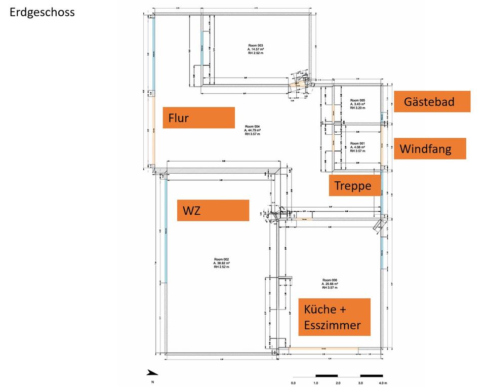 Das riesige Wohnzimmer mit halboffenem Übergang in die Wohnküche besticht mit großer Fensterfront und der Option zur einfachten Installation eines Kamins, da der Schornstein noch einen freien Schacht bietet der von hier zugänglich wäre.