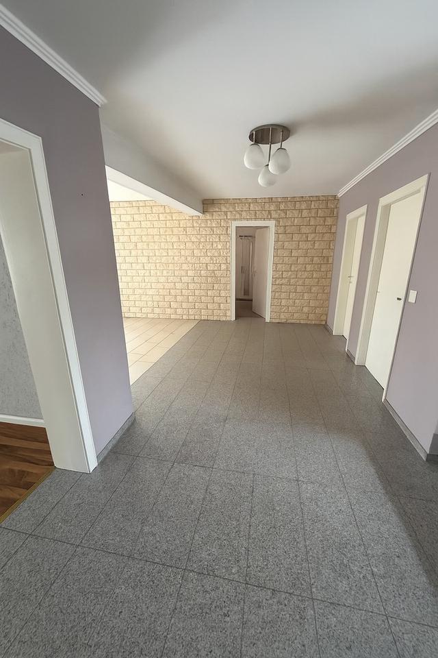 Der riesige Eingangsbereich lädt ein als zweites Wohnzimmer genutzt zu werden oder völlige Freiheit bei der Neuplanung des Grundrisses.