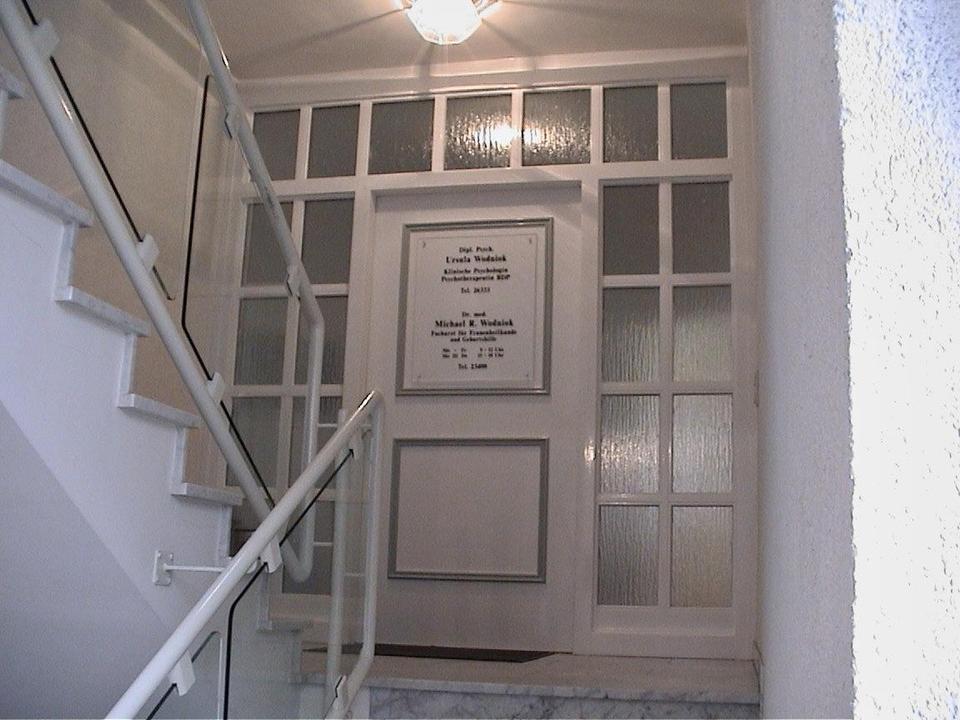 Die Räume befinden sich im 1.OG eines dreistöckigen Ärztehauses mit drei Parteien. Es handelt sich hierbei um einen Neubau der ehemaligen Villa Katharina, welcher 1987 fertiggestellt wurde.