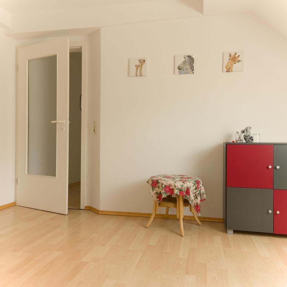 Der Boden ist mit Laminat ausgelegt.