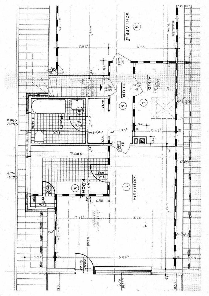 I. OG: 3-Zim.-Dachgeschoss-Wohnung mit Schrägen, ca. 80 qm Wohnfläche . bestehend aus Flur, Küche, Vollbad, Wohnzimmer mit Essecke und Balkon, 2 Schlafzimmer. Zu der Wohnung gehört noch ein Dachgeschoss, dieser dient z.Z. für Lagerzwecke. Vom Wohnzimmer kommt man auf den großen Balkon.