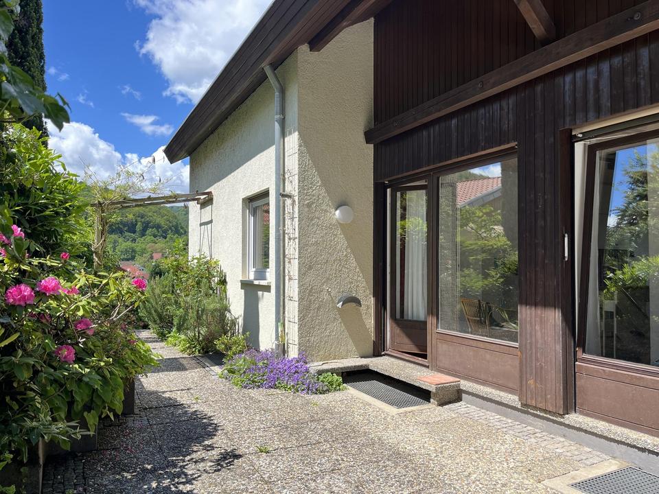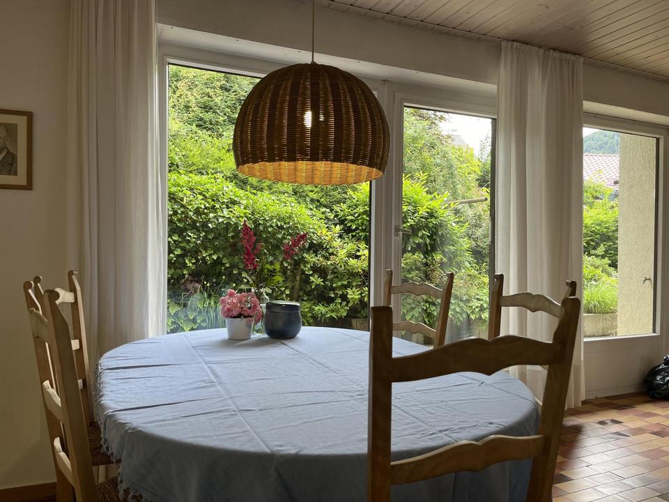 Helles, familienfreundliches Einfamilienhaus mit 6,5 Zimmer. Ein Wohnraum im Untergeschoss (ca. 35 m²) kann auch zu Bürozwecken genutzt werden.