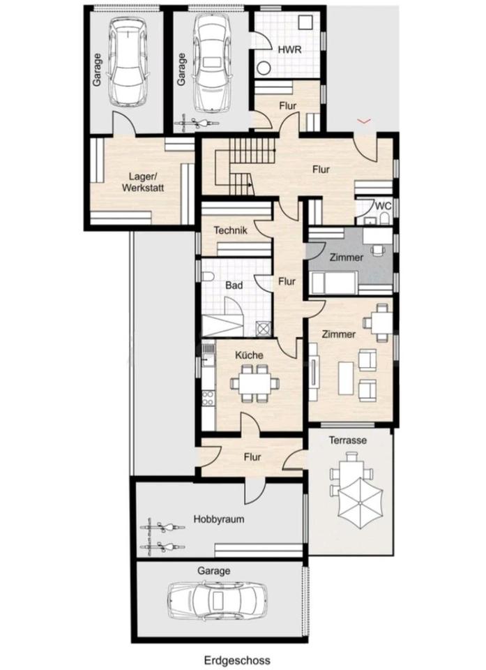 Insgesamt 3 Garagen und mehrere Stellplatzmöglichkeiten (hinten 3 Autos und vorne ca. 7 Autos) bieten Platz für ihre Fahrzeuge und Besuch.