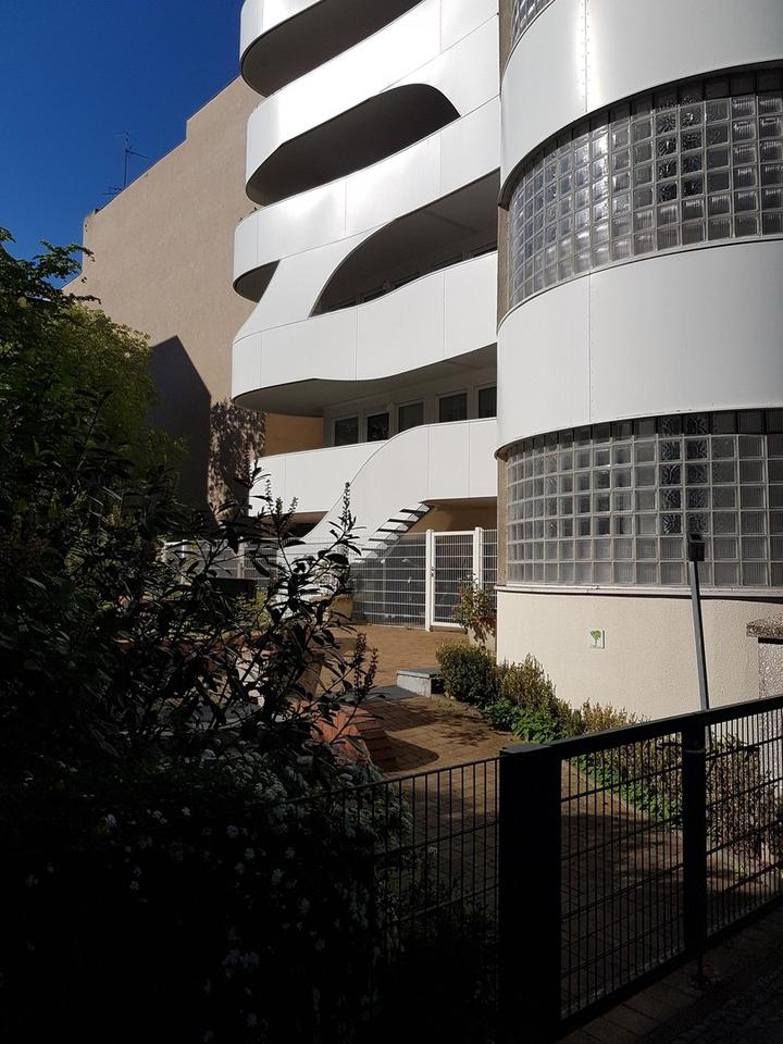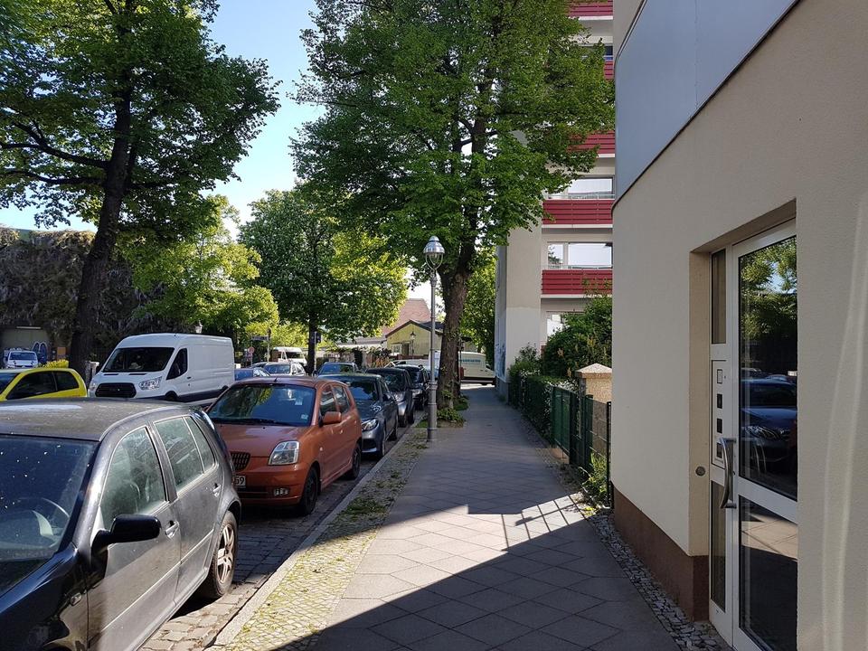 Das Büro / Ladengeschäft (30 qm) befindet sich im Erdgeschoß eines modernen Design-Architekten-Hauses mit 5 Wohnungen und einer Tiefgarage. Es besteht ein direkter Kundeneingang (Glastüre mit weißem Metallrahmen) zum Herrnhuter Weg, der mit einem Rollladen verschlossen werden kann. Die Gewerbeeinheit verfügt über einen zweiten Zugang über den Garten.