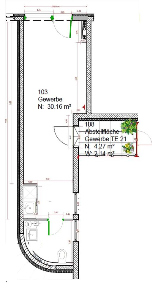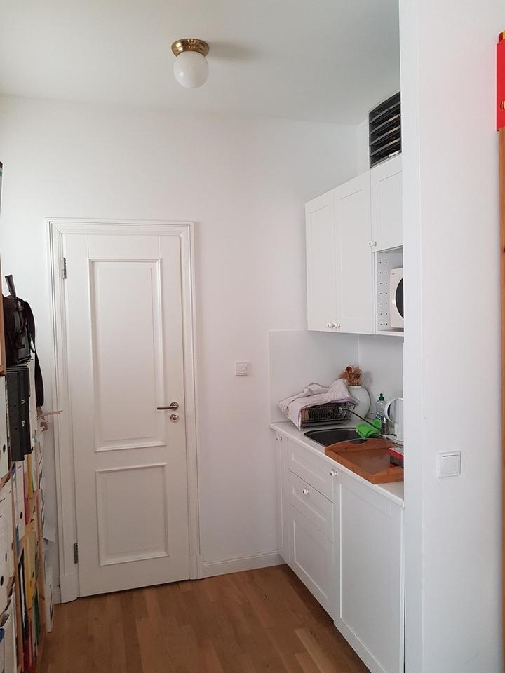 Die Gewerbeeinheit wurde im Jahr 2017 fertiggestellt und wird seitdem vom Eigentümer als Büro genutzt. Sie beinhaltet eine hochwertige Ausstattung, wie Echtholz-Parkett, Fußbodenheizung (Fernwärme) und ein Badezimmer mit Marken-Sanitärobjekten (WC, Waschbecken) und Fliesen, sowie eine weiße Tee-/Kaffeeküche mit Spüle und Kühlschrank.