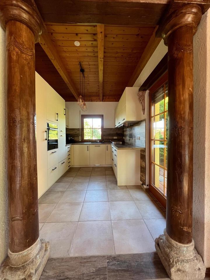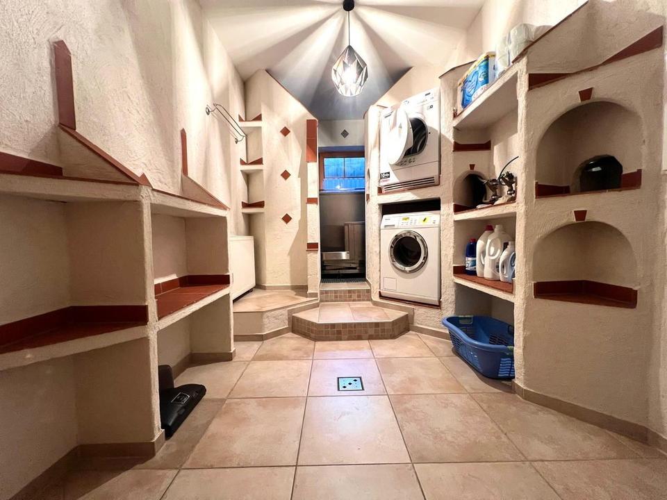 Dieses außergewöhnliche Zuhause, erbaut 2003, Deckenhöhe 270cm, vereint mediterranes Lebensgefühl mit höchstem Wohnkomfort. Liebevoll gestaltete Details wie Holztüren, kunstvolle Säulen, edle Fliesen und handgefertigte Mosaike verleihen dem Haus eine unvergleichliche Atmosphäre – stilvoll, warm und voller Charakter.