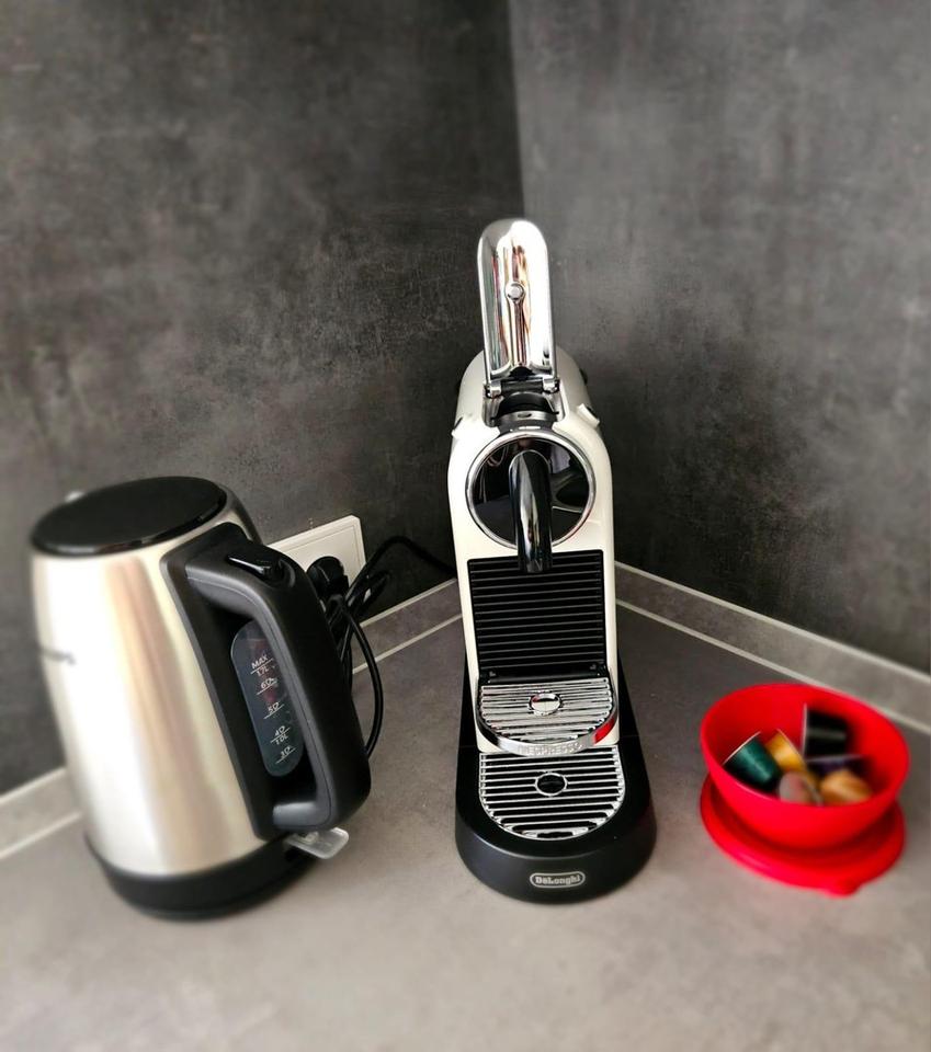 Küche ist voll ausgestattet mit Kaffemaschine (Nespresso), Wasserkocher und Toaster, Waschmaschine, Spülmaschine und einem geräumigen Kühschrank.