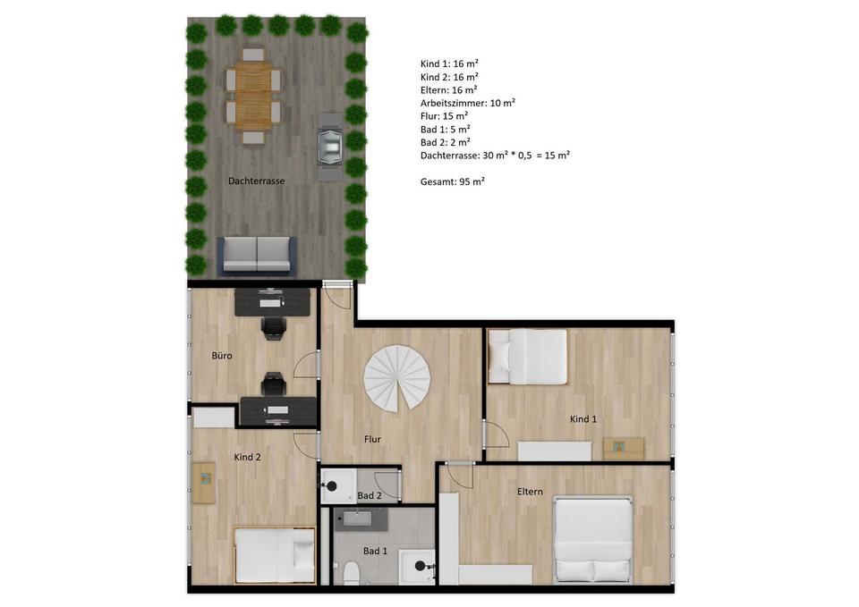 • Balkon und Dachterrasse (ca. 30 m²)