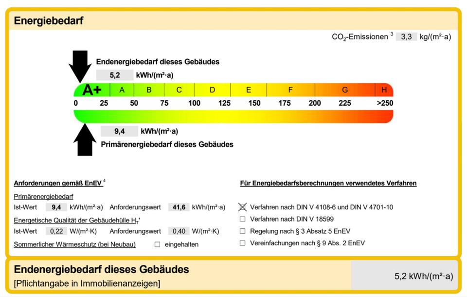 Energieverbrauch: 5 kWh/(m²*a)