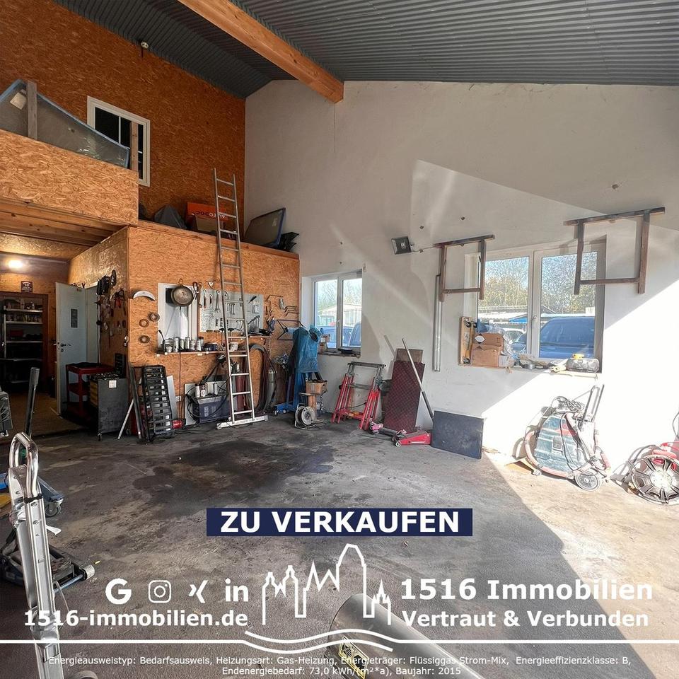 Die erste Gewerbeeinheit wird derzeit als KFZ-Autohandel bzw. Gebrauchtwagenhandel genutzt. Die Innen-Fläche bietet ausreichend Platz für Hebebühne und die Hoffläche Platz für Fahrzeuge, ergänzt durch ein praktisches Büro, ein kleines separates Kleinteileteillager sowie eine Gästetoilette mit Dusche. Über eine Wendeltreppe erreicht man einen gemütlichen Pausenraum im Obergeschoss. Diese Einheit ist ideal für KFZ, Handwerk oder technische Dienstleistung geeignet.