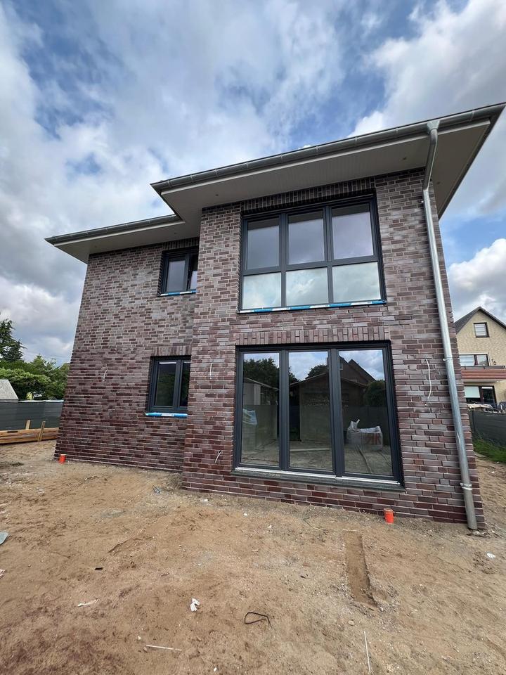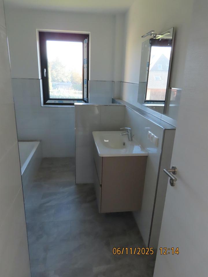 Klinker-Außenfassade, Bad mit Fenster, Massivbauweise, Fliesenboden in allen Räumen, Dreifachverglasung, Fußbodenheizung, offene Küche, 2 x TV und Telefonanschluß (Glasfaser), Netzwerkdosen in jedem Raum mit Patchpanel, Neubau – Erstbezug