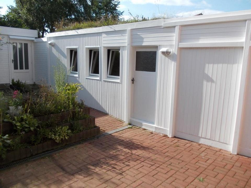 Das Grundstück ist 158 qm groß und besitzt neben einem Vorgarten und Garten zusätzlich eine Terrasse (17 qm), eine Garage (17 qm) und einen Gartenschuppen (14 qm). Die Gemeinschaftsflächen der Grundstücksgemeinschaft ‘Akazienhain‘ stehen mit einer Grünfläche und einem eigenen Kinderspielplatz zusätzlich zur Verfügung. Wenige Meter vom Hauseingang entfernt können vier PKW-Stellplätze an der Zufahrt zum Innenhof von den Anwohnern genutzt werden.