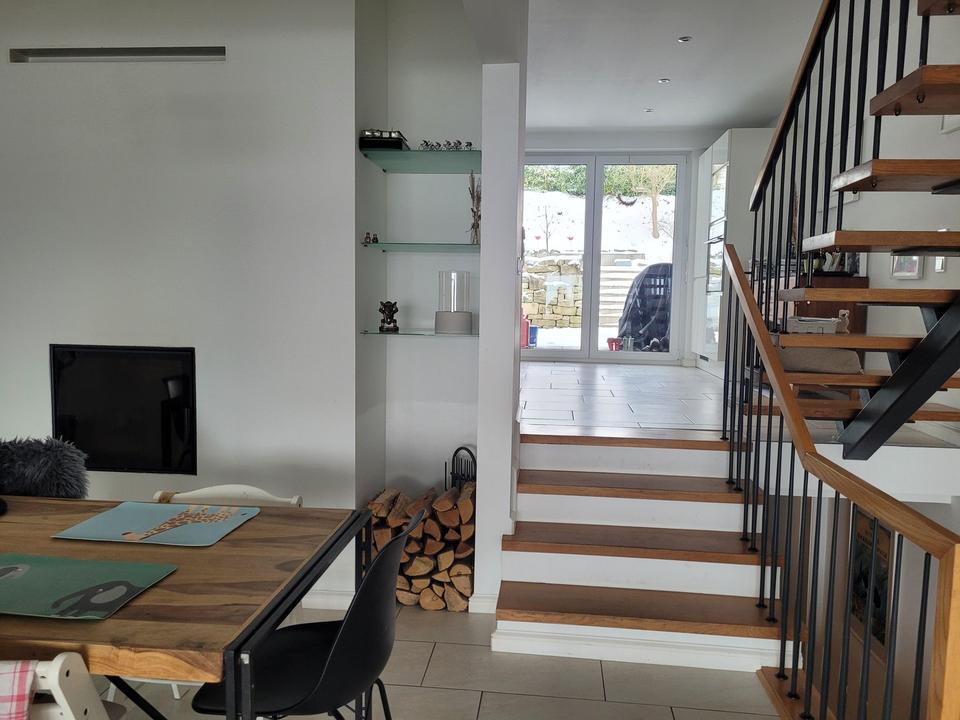 Die Haustür wurde 2021 erneuert. Die großen Fenster (3-fach verglast mit Rollläden), welche im Jahr 2021 eingebaut wurden, und der Balkon mit Südausrichtung gestalten die Räume hell und freundlich. Gleichzeitig bietet der Garten, der 2023 umgestaltet wurde, Platz für eine grüne Oase mit Spiel- und Entspannungsbereich.