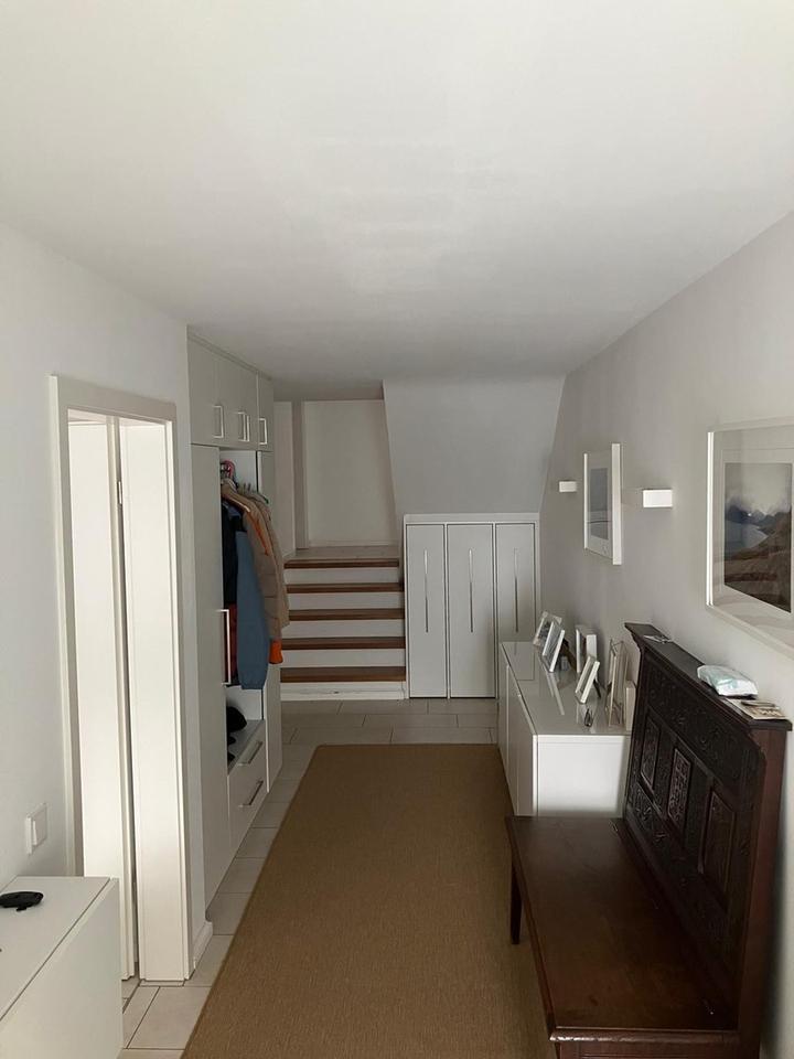 Im EG und 1. OG sind Fliesen, im 2. OG Vinylboden verlegt. Hochwertige, individuell eingepasste Einbauschränke ermöglichen eine effiziente Platznutzung. Eine Fußbodenheizung sorgt für angenehme Wärme. Die Heizung lädt überwiegend über Nachtstrom. Eine großzügige Küche wertet das Objekt zusätzlich auf.