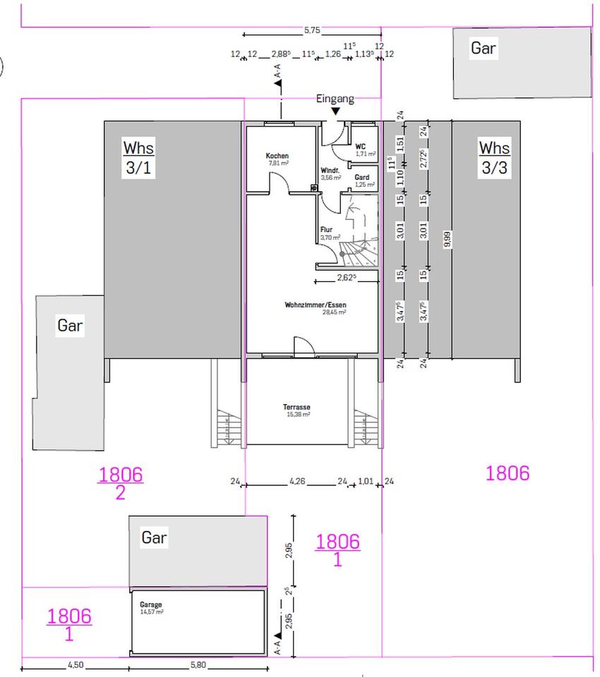 Das Grundstück umfasst ca. 216 m² und bietet eine Terrasse mit Gartenanteil sowie eine Einzelgarage, mit Zugang direkt über das eigene Grundstück.