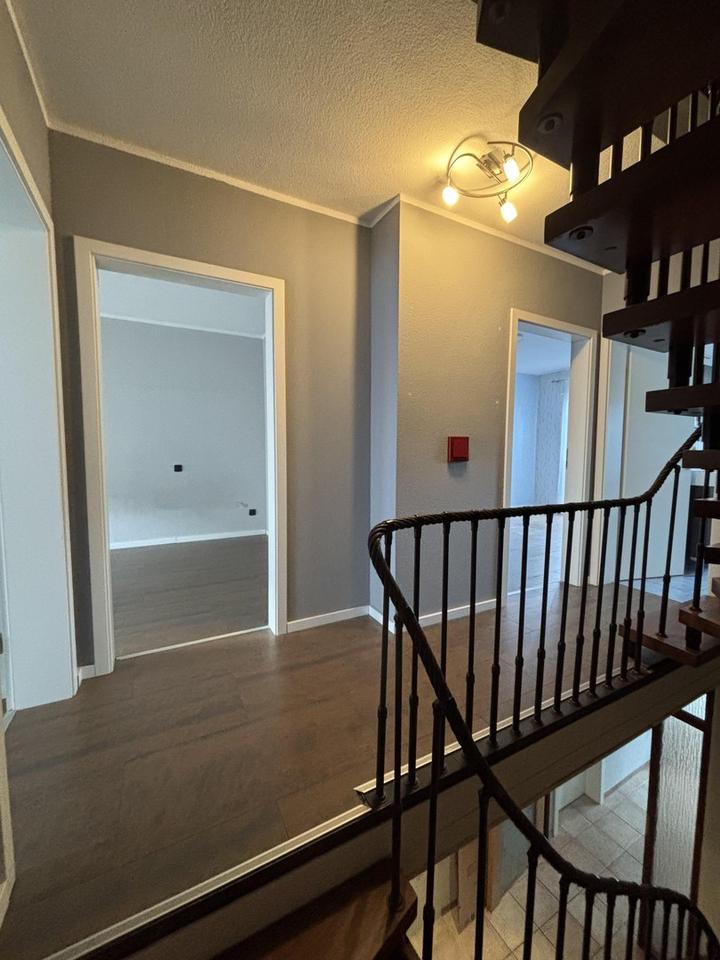 In der ersten Etage sind 3 Schlafzimmer und das große Badezimmer inkl. Fenster mit Dusche und Badewanne, sowie 2 Waschbecken! In dem größten Schlafraum befindet sich ein Einbaukleiderschrank mit Schiebetüren, der sofort befüllt werden kann.