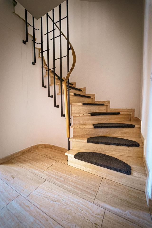 Offene Steintreppe mit Metallgeländer verbindet alle Etagen – stabil, zeitlos und mit wenigen Handgriffen optisch leicht aufwertbar.