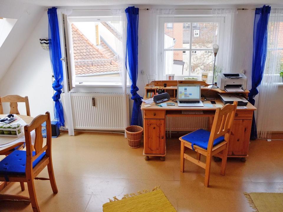 Die Wohnung selbst präsentiert sich gepflegt und hell. Die Raumaufteilung ist funktional gestaltet. Ein Wohn- und Essbereich, ein Schlafzimmer sowie eine Kochnische und ein kompaktes Duschbad mit Tageslicht, schaffen ein gemütliches Zuhause mit individuellem Charme. So wohnen Sie in einem Stück Augsburger Geschichte – mit dem Komfort eines modernen Alltags. Im Dachspitz kann noch zusätzlicher Wohnraum geschaffen werden.